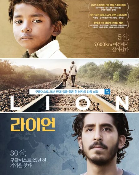 영화는 결국 쉐루의 집요한 구글지도를 바탕으로 자신이 길을 잃었던 곳이 기차역이란 기억으로 모든 기차역을 빼곡히 기록해 가며 결국 가족을 찾으면서 이야기는 끝이 납니다. 사진은 실제 주인공의 모습인데요. 영화의 제목이 라이언인 이유가 쉐트라는 본인의 이름을 자신은 사루라고 기억하는데요 쉐투라는 말은 인도어로 사자라는 뜻이라고 해요. 영화를 보는 내내 5살 어린 소년시절의 기억만으로 성인이 된 이후 온갖 노력으로 가족을 찾은 그 집념에 탄복할 수밖에 없었습니다.